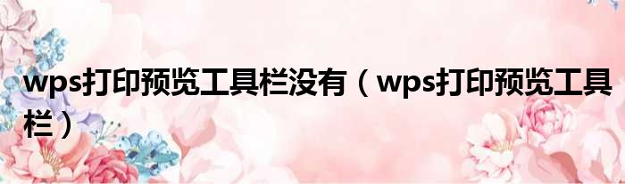 大家好,今天小六子来为大家解答以下的问题,关于wps打印预览工具栏没有,wps打印预览工具栏这个很多人还不知道,现在让我们一起来看看吧!