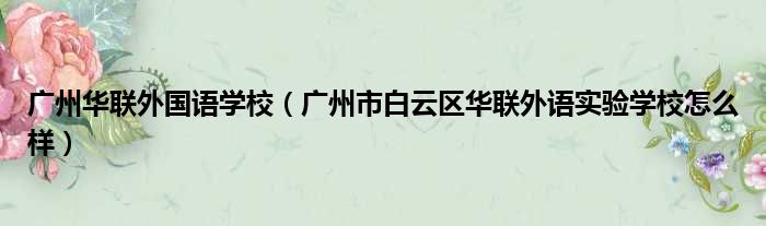 大家好,今天小六子来为大家解答以下的问题,关于广州华联外国语学校,广州市白云区华联外语实验学校怎么样这个很多人还不知道,现在让我们一起来看看吧!