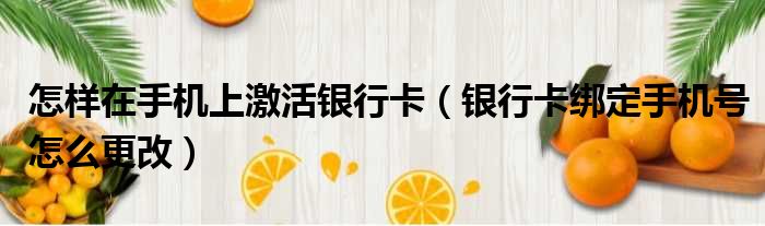 大家好,今天小六子来为大家解答以下的问题,关于怎样在手机上激活银行卡,银行卡绑定手机号怎么更改这个很多人还不知道,现在让我们一起来看看吧!