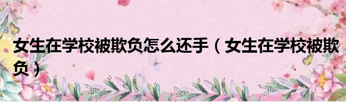 大家好,今天小六子来为大家解答以下的问题,关于女生在学校被欺负怎么还手,女生在学校被欺负这个很多人还不知道,现在让我们一起来看看吧!