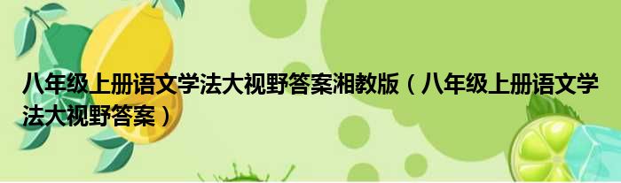 大家好,今天小六子来为大家解答以下的问题,关于八年级上册语文学法大视野答案湘教版,八年级上册语文学法大视野答案这个很多人还不知道,现在让我们一起来看看吧!