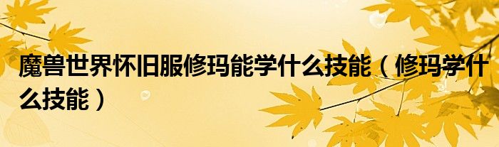 大家好,今天小六子来为大家解答以下的问题,关于魔兽世界怀旧服修玛能学什么技能,修玛学什么技能这个很多人还不知道,现在让我们一起来看看吧!