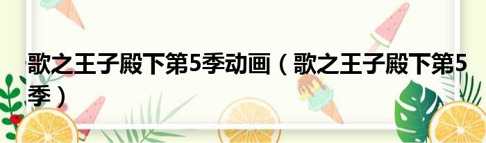 大家好,今天小六子来为大家解答以下的问题,关于歌之王子殿下第5季动画,歌之王子殿下第5季这个很多人还不知道,现在让我们一起来看看吧!