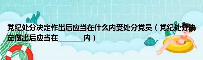 大家好,今天小六子来为大家解答以下的问题,关于党纪处分决定作出后应当在什么内受处分党员,党纪处分决定做出后应当在________内这个很多人还不知道,现在让我们一起来看看吧!
