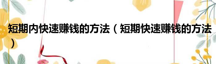 大家好,今天小六子来为大家解答以下的问题,关于短期内快速赚钱的方法,短期快速赚钱的方法这个很多人还不知道,现在让我们一起来看看吧!