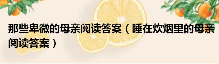 大家好,今天小六子来为大家解答以下的问题,关于那些卑微的母亲阅读答案,睡在炊烟里的母亲阅读答案这个很多人还不知道,现在让我们一起来看看吧!