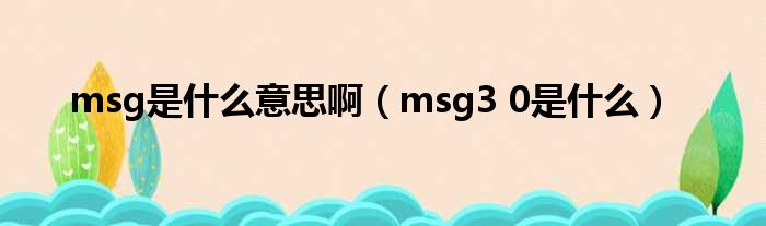 大家好,今天小六子来为大家解答以下的问题,关于msg是什么意思啊,msg3 0是什么这个很多人还不知道,现在让我们一起来看看吧!