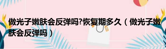 大家好,今天小六子来为大家解答以下的问题,关于做光子嫩肤会反弹吗?恢复期多久,做光子嫩肤会反弹吗这个很多人还不知道,现在让我们一起来看看吧!
