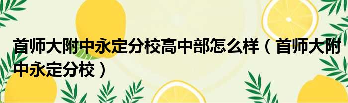 大家好,今天小六子来为大家解答以下的问题,关于首师大附中永定分校高中部怎么样,首师大附中永定分校这个很多人还不知道,现在让我们一起来看看吧!