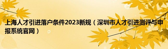 大家好,今天小六子来为大家解答以下的问题,关于上海人才引进落户条件2023新规,深圳市人才引进测评与申报系统官网这个很多人还不知道,现在让我们一起来看看吧!