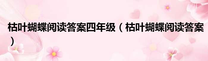 大家好,今天小六子来为大家解答以下的问题,关于枯叶蝴蝶阅读答案四年级,枯叶蝴蝶阅读答案这个很多人还不知道,现在让我们一起来看看吧!