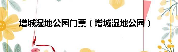 大家好,今天小六子来为大家解答以下的问题,关于增城湿地公园门票,增城湿地公园这个很多人还不知道,现在让我们一起来看看吧!