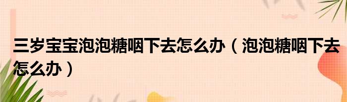 大家好,今天小六子来为大家解答以下的问题,关于三岁宝宝泡泡糖咽下去怎么办,泡泡糖咽下去怎么办这个很多人还不知道,现在让我们一起来看看吧!
