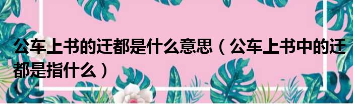 大家好,今天小六子来为大家解答以下的问题,关于公车上书的迁都是什么意思,公车上书中的迁都是指什么这个很多人还不知道,现在让我们一起来看看吧!