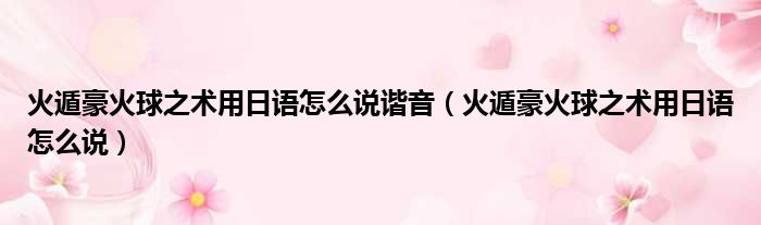 大家好,今天小六子来为大家解答以下的问题,关于火遁豪火球之术用日语怎么说谐音,火遁豪火球之术用日语怎么说这个很多人还不知道,现在让我们一起来看看吧!