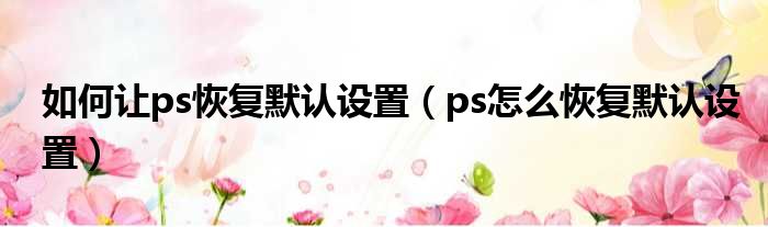 大家好,今天小六子来为大家解答以下的问题,关于如何让ps恢复默认设置,ps怎么恢复默认设置这个很多人还不知道,现在让我们一起来看看吧!