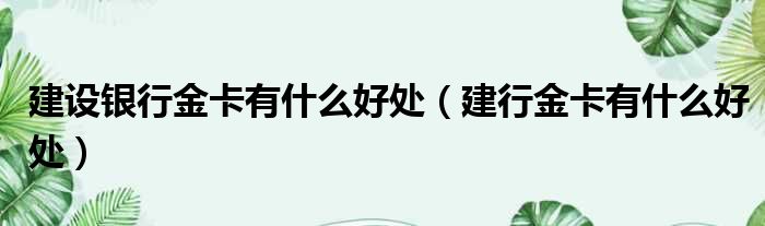 1、建设银行的金卡有很多好处:例如如下挂失、 补卡、 换卡、 密码挂失都是免费的2、并且理财卡金卡下属可以有2个附属卡,供直系亲属使用,方便家长监管小孩的账户信息 3、在办理速汇通业务时能减免20%的手续费(俗称的汇款)4、在开据存款证明的时候免收手续费5、金卡是没有年费的6、理财卡金卡客户能直接得到个人消费贷款的准入条件,更方便贷款需求7、如果再境外掉卡,还可以享受紧急补卡服务,并且还有紧急应急服务(最高金额为1000美金)8、在网点可以直接办理业务无需排队9、账户产生500以上金额交易时候有短信提示(免费)(需签约)【注意】建行金卡在申请条件上,需要具备以下条件才能申请办理建行金卡:在一年以内,个人的金融资产每月余额在二十万元以上。