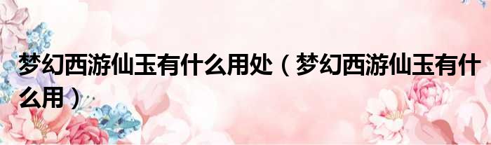 大家好,今天小六子来为大家解答以下的问题,关于梦幻西游仙玉有什么用处,梦幻西游仙玉有什么用这个很多人还不知道,现在让我们一起来看看吧!