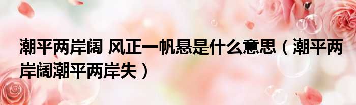 大家好,今天小六子来为大家解答以下的问题,关于潮平两岸阔 风正一帆悬是什么意思,潮平两岸阔潮平两岸失这个很多人还不知道,现在让我们一起来看看吧!