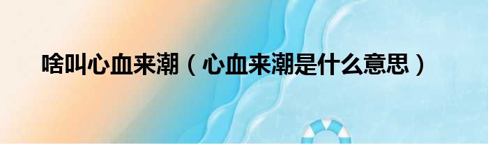 大家好,今天小六子来为大家解答以下的问题,关于啥叫心血来潮,心血来潮是什么意思这个很多人还不知道,现在让我们一起来看看吧!