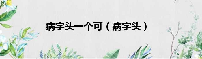 大家好,今天小六子来为大家解答以下的问题,关于病字头一个可,病字头这个很多人还不知道,现在让我们一起来看看吧!
