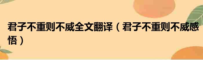 大家好,今天小六子来为大家解答以下的问题,关于君子不重则不威全文翻译,君子不重则不威感悟这个很多人还不知道,现在让我们一起来看看吧!
