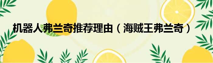 大家好,今天小六子来为大家解答以下的问题,关于机器人弗兰奇推荐理由,海贼王弗兰奇这个很多人还不知道,现在让我们一起来看看吧!