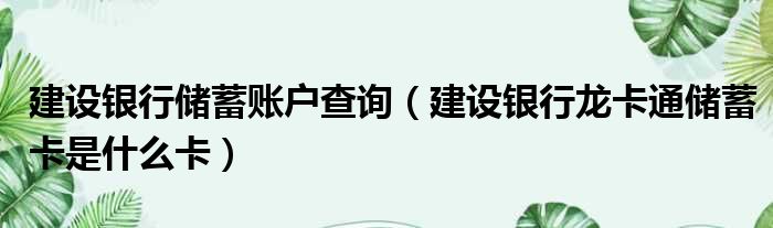大家好,今天小六子来为大家解答以下的问题,关于建设银行储蓄账户查询,建设银行龙卡通储蓄卡是什么卡这个很多人还不知道,现在让我们一起来看看吧!