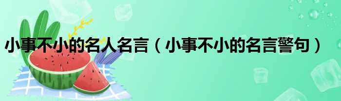 大家好,今天小六子来为大家解答以下的问题,关于小事不小的名人名言,小事不小的名言警句这个很多人还不知道,现在让我们一起来看看吧!