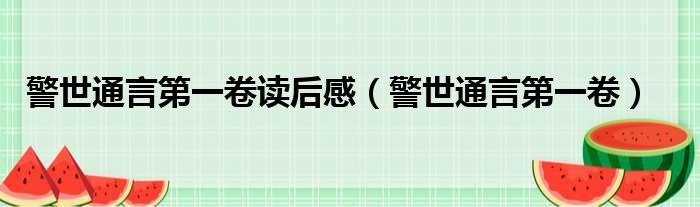 大家好,今天小六子来为大家解答以下的问题,关于警世通言第一卷读后感,警世通言第一卷这个很多人还不知道,现在让我们一起来看看吧!