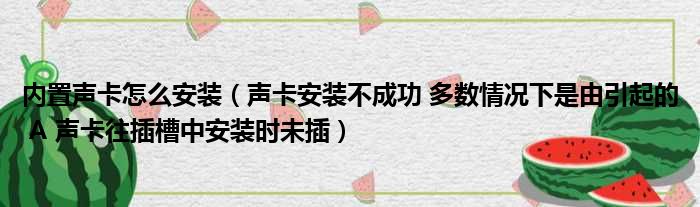 大家好,今天小六子来为大家解答以下的问题,关于内置声卡怎么安装,声卡安装不成功 多数情况下是由引起的 A 声卡往插槽中安装时未插这个很多人还不知道,现在让我们一起来看看吧!