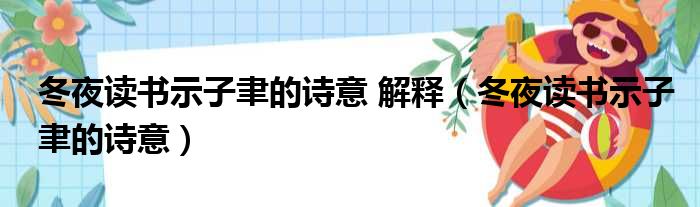 大家好,今天小六子来为大家解答以下的问题,关于冬夜读书示子聿的诗意 解释,冬夜读书示子聿的诗意这个很多人还不知道,现在让我们一起来看看吧!