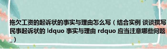 大家好,今天小六子来为大家解答以下的问题,关于拖欠工资的起诉状的事实与理由怎么写,结合实例 谈谈撰写民事起诉状的 ldquo 事实与理由 rdquo 应当注意哪些问题_这个很多人还不知道,现在让我们一起来看看吧!