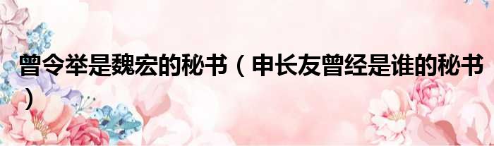 大家好,今天小六子来为大家解答以下的问题,关于曾令举是魏宏的秘书,申长友曾经是谁的秘书这个很多人还不知道,现在让我们一起来看看吧!