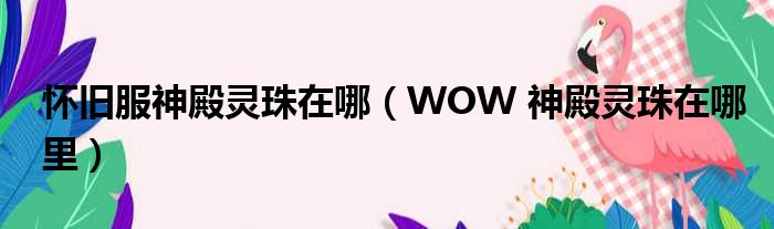 大家好,今天小六子来为大家解答以下的问题,关于怀旧服神殿灵珠在哪,WOW 神殿灵珠在哪里这个很多人还不知道,现在让我们一起来看看吧!