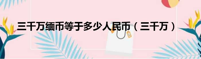 大家好,今天小六子来为大家解答以下的问题,关于三千万缅币等于多少人民币,三千万这个很多人还不知道,现在让我们一起来看看吧!