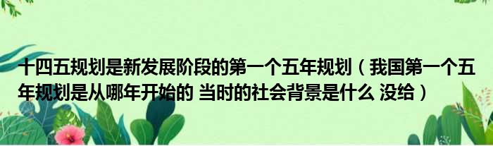 大家好,今天小六子来为大家解答以下的问题,关于十四五规划是新发展阶段的第一个五年规划,我国第一个五年规划是从哪年开始的 当时的社会背景是什么 没给这个很多人还不知道,现在让我们一起来看看吧!