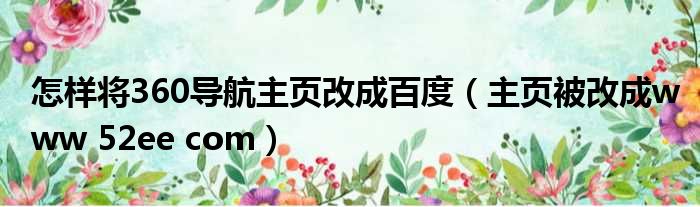 大家好,今天小六子来为大家解答以下的问题,关于怎样将360导航主页改成百度,主页被改成www 52ee com这个很多人还不知道,现在让我们一起来看看吧!
