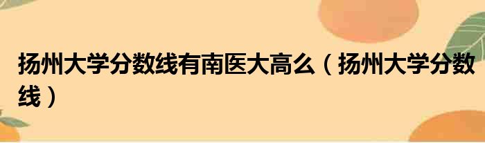 大家好,今天小六子来为大家解答以下的问题,关于扬州大学分数线有南医大高么,扬州大学分数线这个很多人还不知道,现在让我们一起来看看吧!
