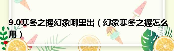 大家好,今天小六子来为大家解答以下的问题,关于9.0寒冬之握幻象哪里出,幻象寒冬之握怎么用这个很多人还不知道,现在让我们一起来看看吧!