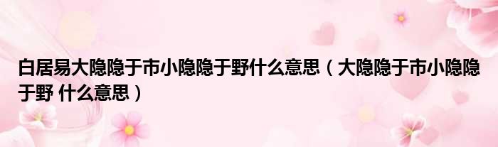 大家好,今天小六子来为大家解答以下的问题,关于白居易大隐隐于市小隐隐于野什么意思,大隐隐于市小隐隐于野 什么意思这个很多人还不知道,现在让我们一起来看看吧!