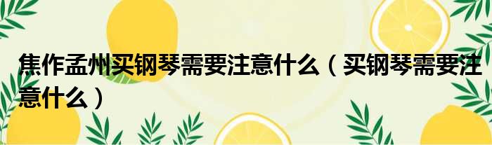 大家好,今天小六子来为大家解答以下的问题,关于焦作孟州买钢琴需要注意什么,买钢琴需要注意什么这个很多人还不知道,现在让我们一起来看看吧!
