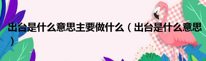 大家好,今天小六子来为大家解答以下的问题,关于出台是什么意思主要做什么,出台是什么意思这个很多人还不知道,现在让我们一起来看看吧!
