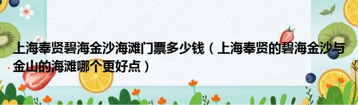 1、现在奉贤的比较好,金山的被比下去了其实金山的也没什么值得去的,设施,条件,风景,停车,游客都不比奉贤的好不过价钱相差还满大的金山:海边不需要门票,进沙滩游泳的话需要20块钱门票,一直到晚上7点。