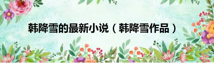 大家好,今天小六子来为大家解答以下的问题,关于韩降雪的最新小说,韩降雪作品这个很多人还不知道,现在让我们一起来看看吧!