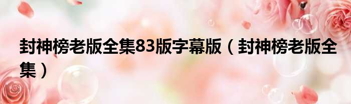 封神榜老版全集83版字幕版 封神榜老版全集 网络整理 经验 2023-07-05 10:32:22 大家好,今天小六子来为大家解答以下的问题,关于封神榜老版全集83版字幕版,封神榜老版全集这个很多人还不知道,现在让我们一起来看看吧!1、搜网页。2、百度都可以。3、还有百度影音。本文分享完毕,希望对你有所帮助。 声明:免责声明:本文来源网友投稿及网络整合仅代表文章作者的个人观点,与本站无关。其原创性、真实性以及文中陈述文字和内容未经本站证实,对本文以及其中全部或者部分内容文字的真实性、完整性和原创性本站不作任何保证或承诺,请读者仅作参考,并自行核实相关内容。投诉邮箱:1765130767@qq.com。 本文地址:https://www.anfu123.com/jingyan/112099.html