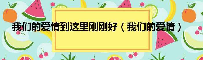 大家好,今天小六子来为大家解答以下的问题,关于我们的爱情到这里刚刚好,我们的爱情这个很多人还不知道,现在让我们一起来看看吧!