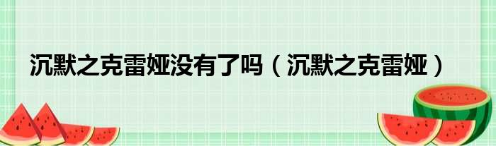 大家好,今天小六子来为大家解答以下的问题,关于沉默之克雷娅没有了吗,沉默之克雷娅这个很多人还不知道,现在让我们一起来看看吧!