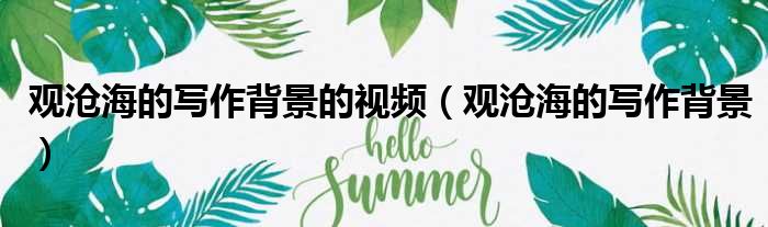 大家好,今天小六子来为大家解答以下的问题,关于观沧海的写作背景的视频,观沧海的写作背景这个很多人还不知道,现在让我们一起来看看吧!