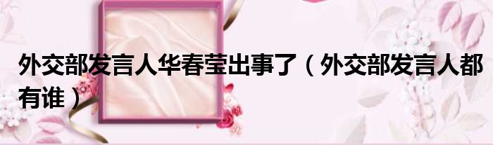 大家好,今天小六子来为大家解答以下的问题,关于外交部发言人华春莹出事了,外交部发言人都有谁这个很多人还不知道,现在让我们一起来看看吧!